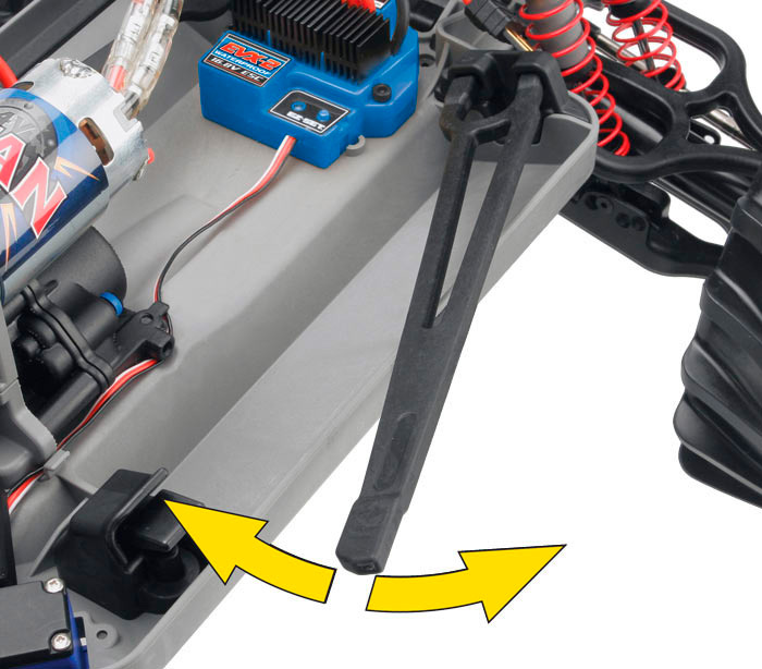 E-Maxx is equipped with the world's most advanced Ready-To-Race® radio system. The all-new Traxxas® TQi™ arrives with a full complement of tuning features and offers the unbeatable convenience of "no channels, no crystals" 2.4GHz technology—but that's just the beginning. Automatic model recognition instantly recalls your settings for up to 30 Traxxas Link-enabled models. Just switch on and drive, no naming or "model memory" settings required. Power up the transmitter and the model you want to drive, and the settings for that model are dialed in immediately! The new TQi 2.4GHz transmitter is fully adjustable: steering and throttle end points can be set precisely, and the Multi-Function knob can be programmed to control Steering Sensitivity (Expo), Throttle Sensitivity (Expo), Steering Percentage (Dual Rate), Braking Percentage (Dual Rate), or Throttle Trim. TQi's ergonomic case design provides all-day driving comfort, and the unique internal antenna contributes to its sleek, modern look.