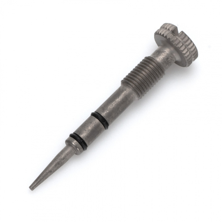 - This is the optional Needle-B (identified by the groove on the head) that gives you a more unsensitive adjustement (less angle on the taper) compared to the standard Needle-A that is pre-installed in the inflight/remote R/C needle set from the factory.