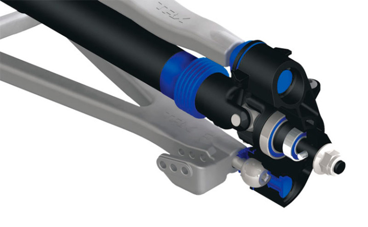 E-Revo is equipped with the world's most advanced Ready-To-Race® radio system. The all-new Traxxas® TQi™ arrives with a full complement of tuning features and offers the unbeatable convenience of "no channels, no crystals" 2.4GHz technology—but that's just the beginning. Automatic model recognition instantly recalls your settings for up to 30 Traxxas Link-enabled models. Just switch on and drive, no naming or "model memory" settings required. Power up the transmitter and the model you want to drive, and the settings for that model are dialed in immediately! The new TQi 2.4GHz transmitter is fully adjustable: steering and throttle end points can be set precisely, and the Multi-Function knob can be programmed to control Steering Sensitivity (Expo), Throttle Sensitivity (Expo), Steering Percentage (Dual Rate), Braking Percentage (Dual Rate), or Throttle Trim. TQi's ergonomic case design provides all-day driving comfort, and the unique internal antenna contributes to its sleek, modern look.