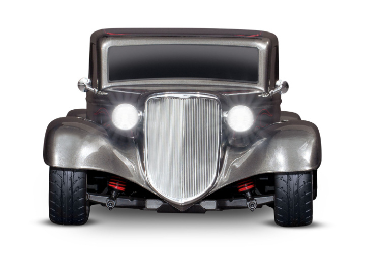 A steeply-raked chrome grille flows into the long narrow hood and aggressively chopped roof. Chrome headlights flank the sculpted fenders with full running boards. Deep, lustrous paint and wild graphics complete the package. The look is pure classic hot rod and Traxxas brings this timeless style to life in 1/10 scale.
