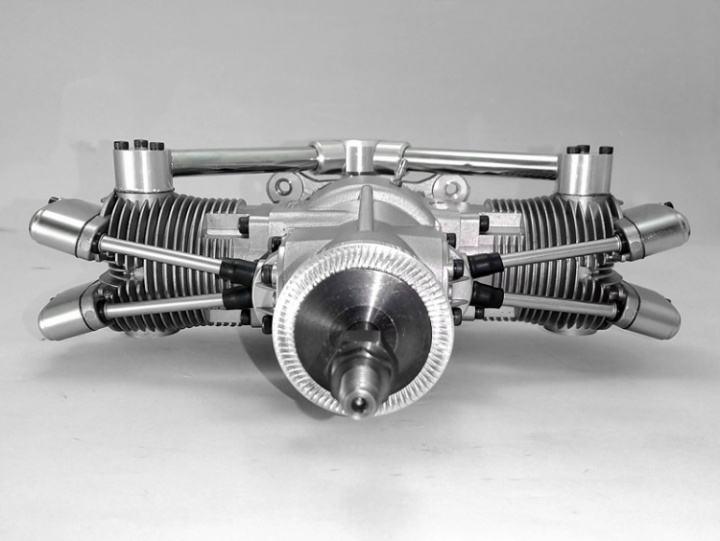 This is a horizontally opposed boxer type 2-cylinder gasoline engine that matches medium-sized scale aircrafts.Specs:
