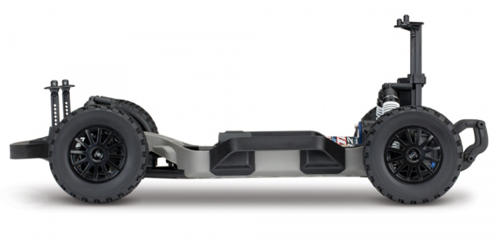- Low-CG fiber-composite monocoque chassis with high approach angle front bumper