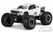 This is a Pre-Cut Brute Bash Armor White Body for X-MAXX®. Pro-Line has developed the Ultimate Bash body for your X-MAXX® – the pre-cut Brute body featuring Pro-Line’s all-new Bash Armor material! If you are like us, you want a dependable high strength body you can count on for your X-MAXX®. The Brute Bash Armor White Body has been developed from the ground up to be the toughest body Pro-Line has ever produced. The all-new Bash Armor material is twice as thick as regular X-MAXX® bodies and is ultra-flexible to prevent cracking and shattering. Unlike clear polycarbonate, the Bash Armor material is White and is not paintable, so Pro-Line includes detailed decal sheets that feature fender and window graphics to complete the look. The Brute is Pro-Line's take on a modern truck and features a bold grill with eye-pleasing body lines sure to turn heads at your local bash spot. The Brute body has been designed to work with the stock X-MAXX® body mount and cage system which is sold separately and is required for proper mounting. If you are ready to battle your buddies, then get the strongest body possible for your X-MAXX® - the Pre-Cut Brute body with Bash Armor material technology!Don't forget to submit your finished Pro-Line body to Reader's Rides when you are done. Who knows, you could get your ride posted on the blog and you could even win a prize!