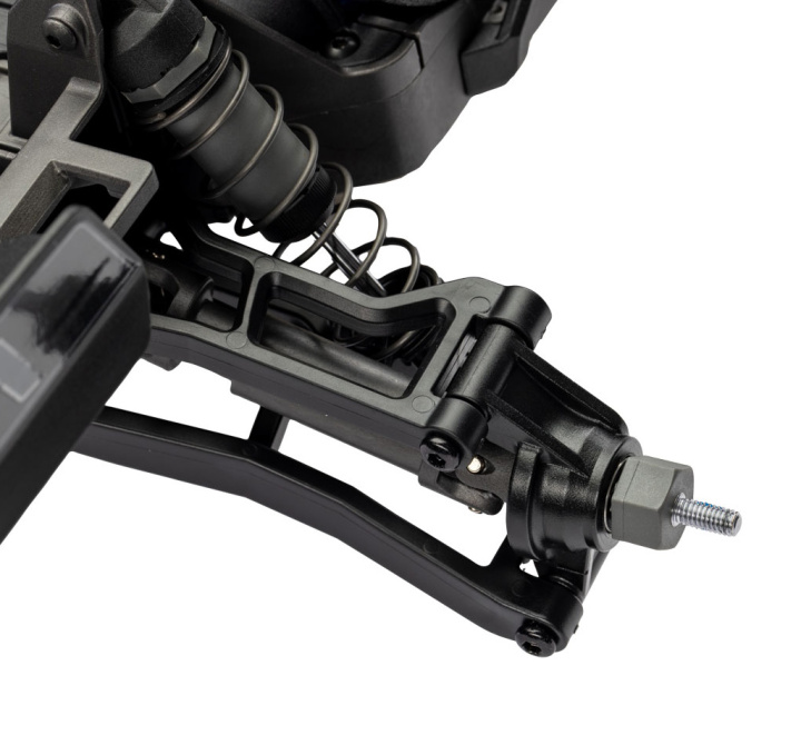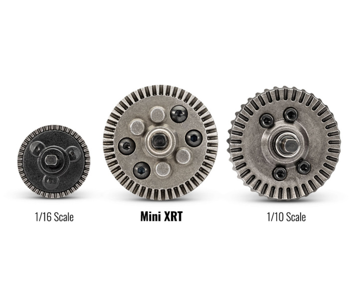 Adding 3s Velineon power to a compact platform requires bold engineering. Mini XRT comes outfitted with the proven driveline components of Traxxas’ toughest 1/10 scale 4X4 trucks. Front, center, and rear steel-gear differentials, along with 32-pitch gearing and HD driveshafts, far exceed requirements for strength and long life.