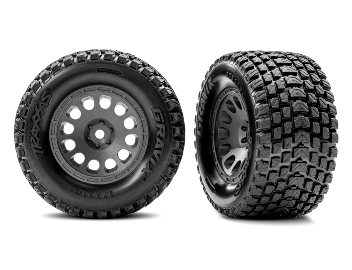 - Wheels & Tires: Black dual-profile XRT wheels with pre-glued 4" Gravix tires