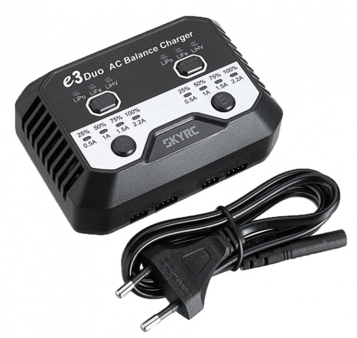 SkyRC e3 Launched with Dual-ChannelThe next evolution of the SkyRC's successful line of professional and economic chargers is here with the e3 Duo dual 2.2A balance charger.