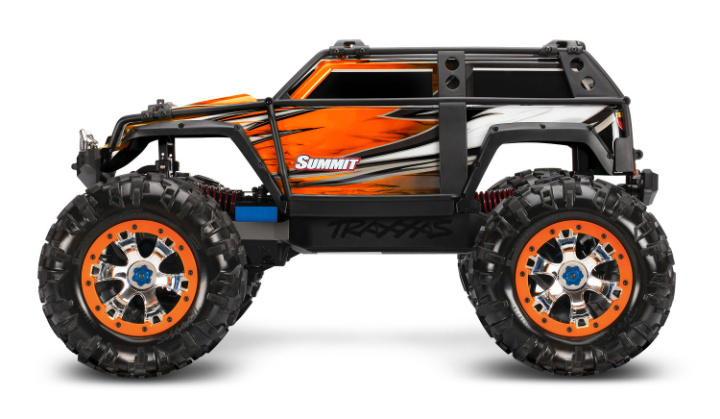When the trail gets challenging, you can count on the Summit to make it through. The Traxxas Summit offers durability, versatility and off-the-trail capability greater than any other 4WD monster truck on the market. The Traxxas engineers packed the Summit with technological innovations like our transmitter-operated high/low transmission and remote-locking front and rear differentials. The Summit generates tons of torque from the 775 Titan® brushed motor while the rugged ExoCage™ keeps the Summit safe off the trail.
