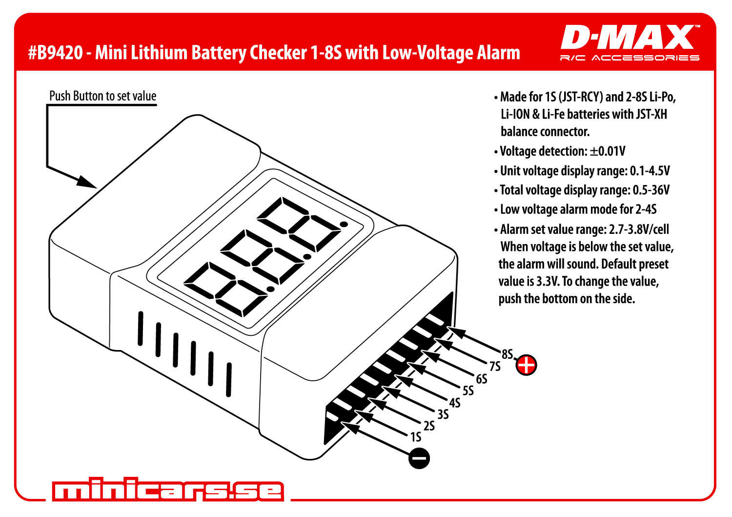 - Input Voltage: 2-4S Lipo or 6-12 Cell NiMH